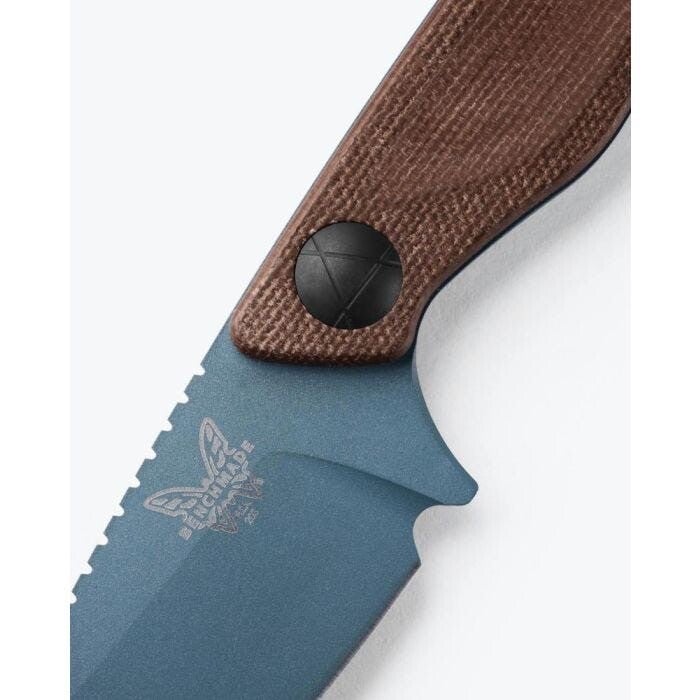 When there's work to be done and the rigors of the day demand a tough, all-purpose fixed blade, the 203BT-03 Dacian™ is your go-to knife built for everyday utility and outdoor recreation. Featuring super-tough and corrosion-resistant MagnaCut steel in a spear-point blade profile with a Blue Titanium Cerakote® finish, the 203BT-03‘s durable brown micarta handle has lateral grooves running the length of the scales for extreme comfort in multiple grip positions. The scout-carry sheath combines the classic look of leather combined with the Boltaron® insert that provides strong retention, the Dacian™ mounts conveniently on the belt for easy access during your daily grind.